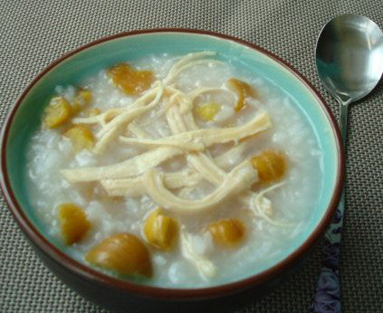 Zutaten: 100 g Reis, kastanien, 50 Gramm, hühnerbrust, 80 g, 5 g Salz, öl, 10 ml und 1000 ml Wasser