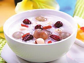 Longans, Datteln, garnen, coix jeweils 25 Gramm, plus 100 Gramm Reis kochen suppe in Allen MIT 20 Gramm Zucker, würze.Für die Arbeit ALS mangel an herzklopfen.